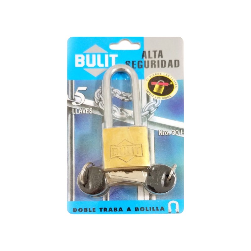 Vista rápida Referencia: 00574 Marca: BULIT Candado BULIT alta seguridad 30mm Cód: 00574 Más En stock