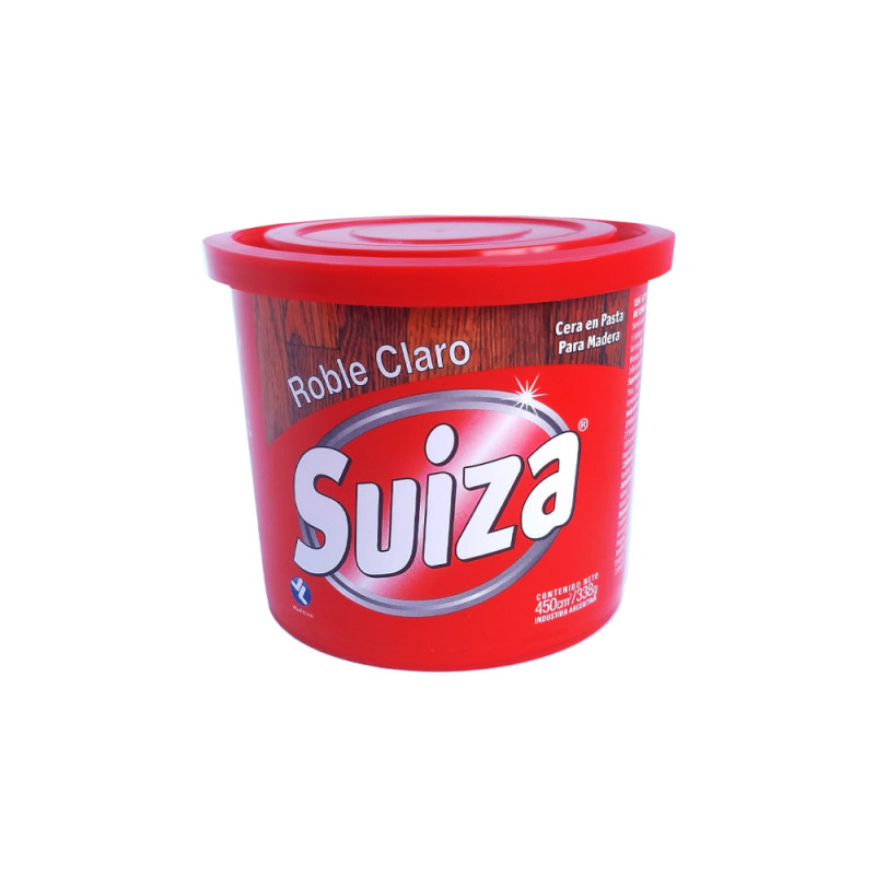 Cera concentrada en pasta de gran rendimiento, fabricada según una única y tradicional fórmula que produce un brillo intenso y es de alta duración. Los pisos lustrados con Cera Suiza no marcan las pisadas ni denotan manchas de agua. Esta cera está preparada especialmente para pisos de parquet, linoleum y pinotea. También puede usarse para muebles y otros objetos de madera. .Embalaje: 6U